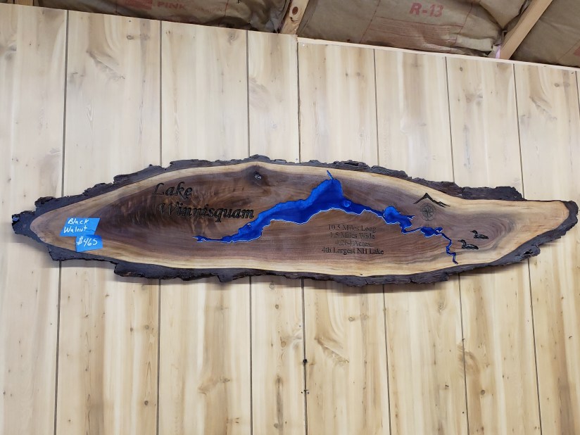 12″x53″ Black Walnut with Lake Winnisquam Carved into it and filled w a beautiful blue epoxy. $465. Please send me a message if you are interested In This.
