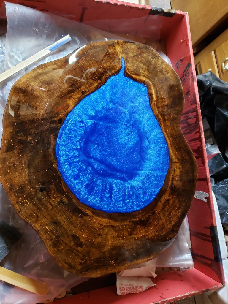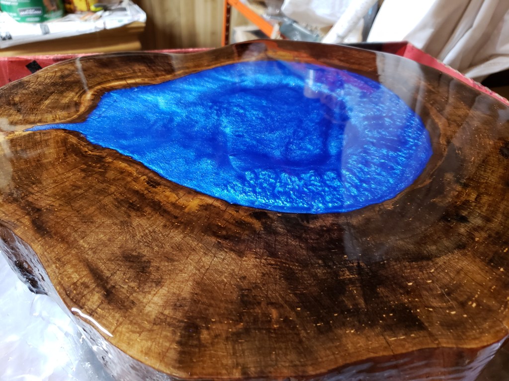 Maple Table w Cobalt Blue Epoxy in Nature-Made center. $285.00