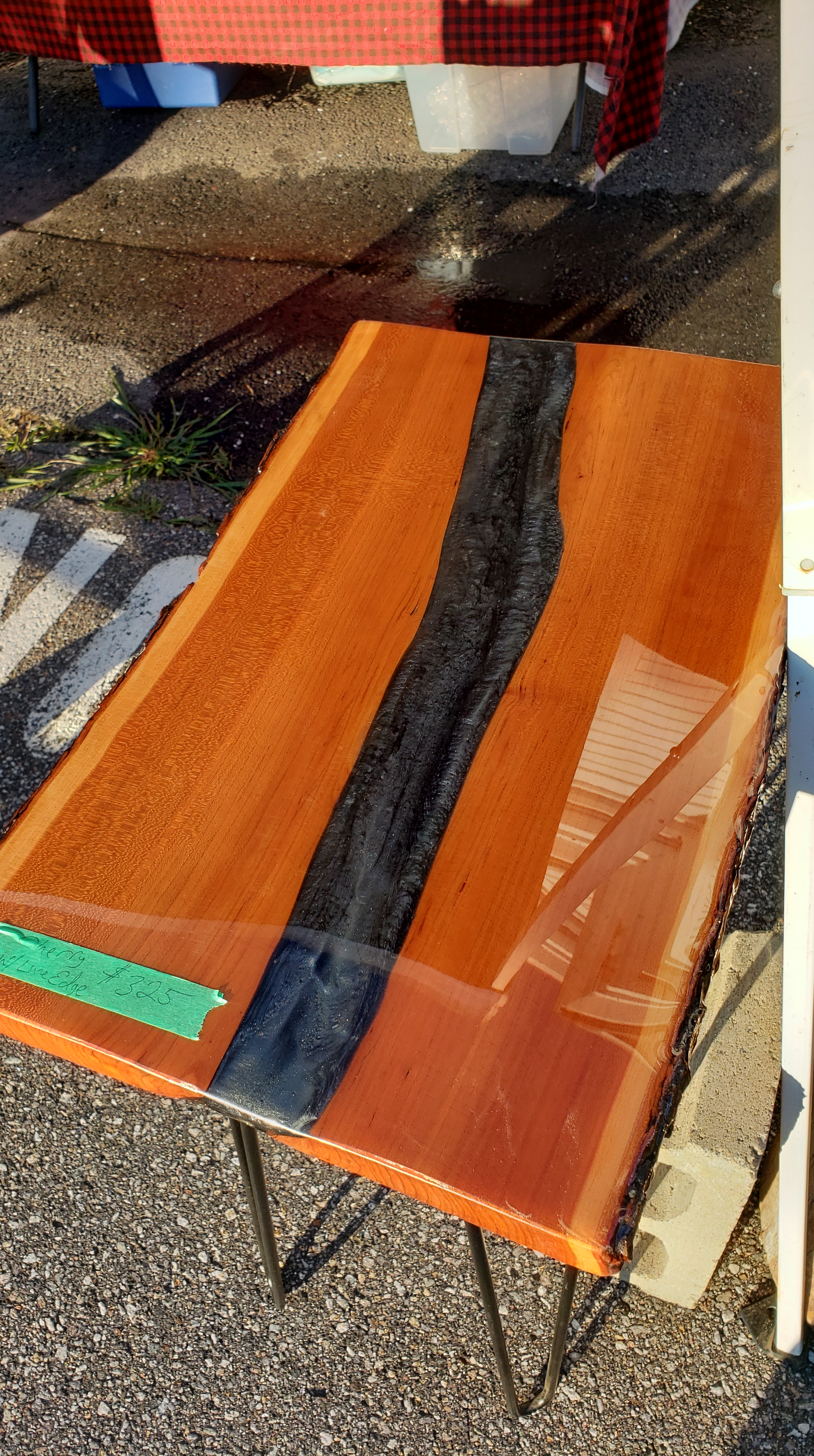 Cherry w Live Edge and Black Onyx Epoxy filled Coffee Table. Still Avail.