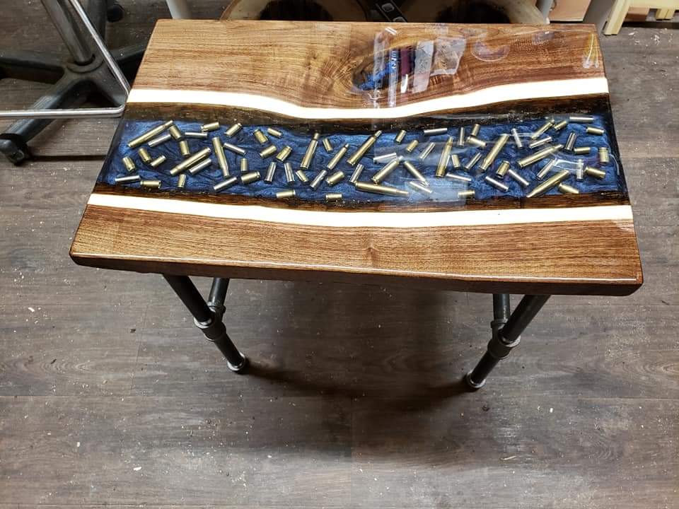 I saw your carvings at the Tilton Outlets in NH, You do amazing work. Recently I noticed on your website the epoxy table with the bullet casings. Could you let me know how much they cost. Also, I noticed on your web page that you sell some of your items at a Country Store. Where is that store located?