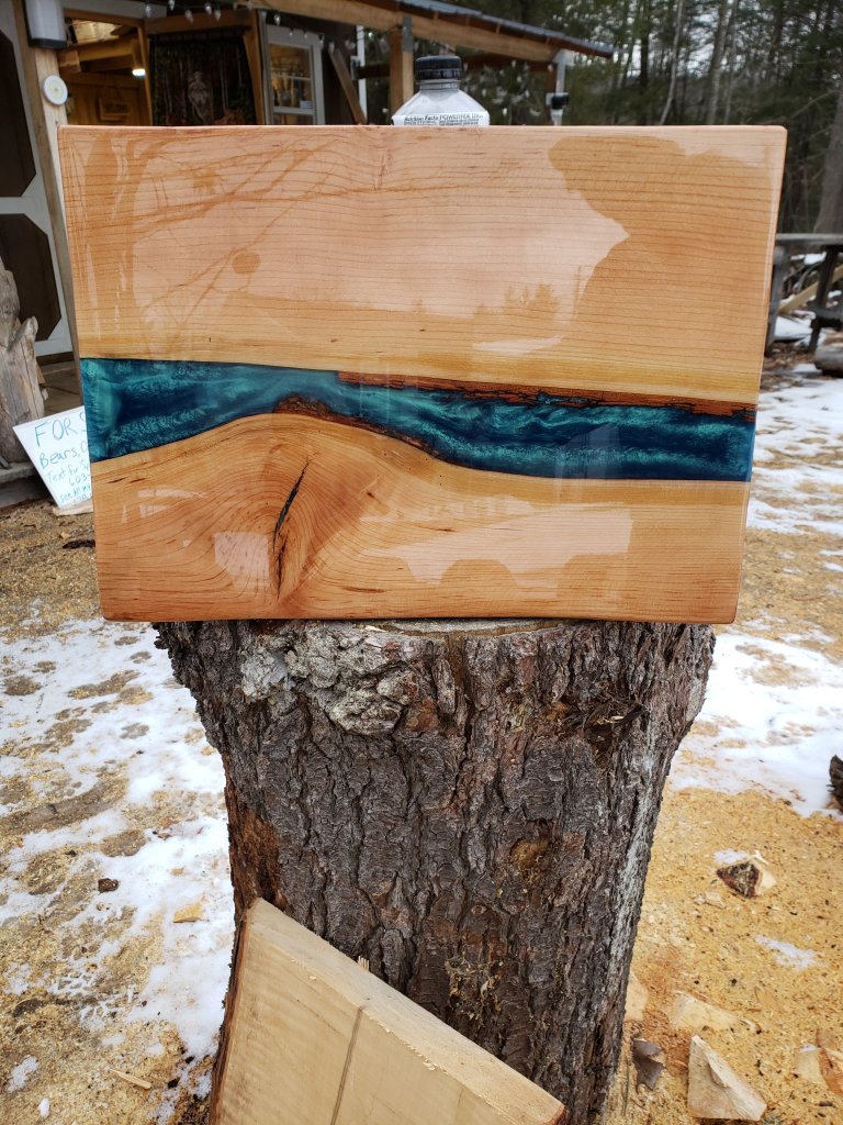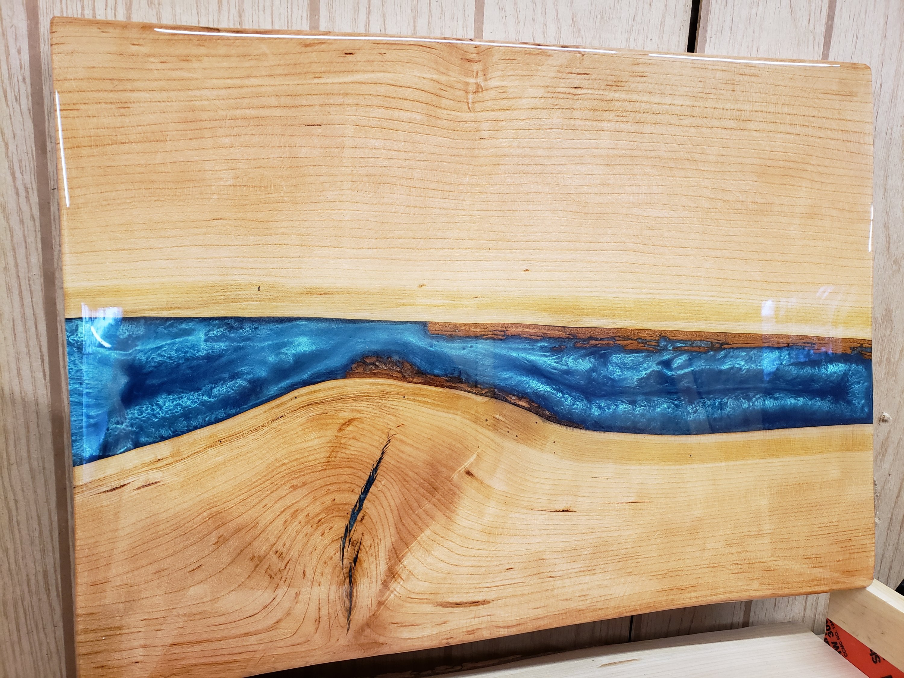 This beautiful in table or serving tray is ready for a new home the beautiful aqua colours swirl and look like they still have motionThis beautiful in table or serving tray is ready for a new home the beautiful aqua colours swirl and look like they still have motion. It is a 20 by 28″ table. Send me a message if you are interested. Price will vary on what you want for add-ons, example, metal legs, wooden legs,, how tall? Or serving handles.