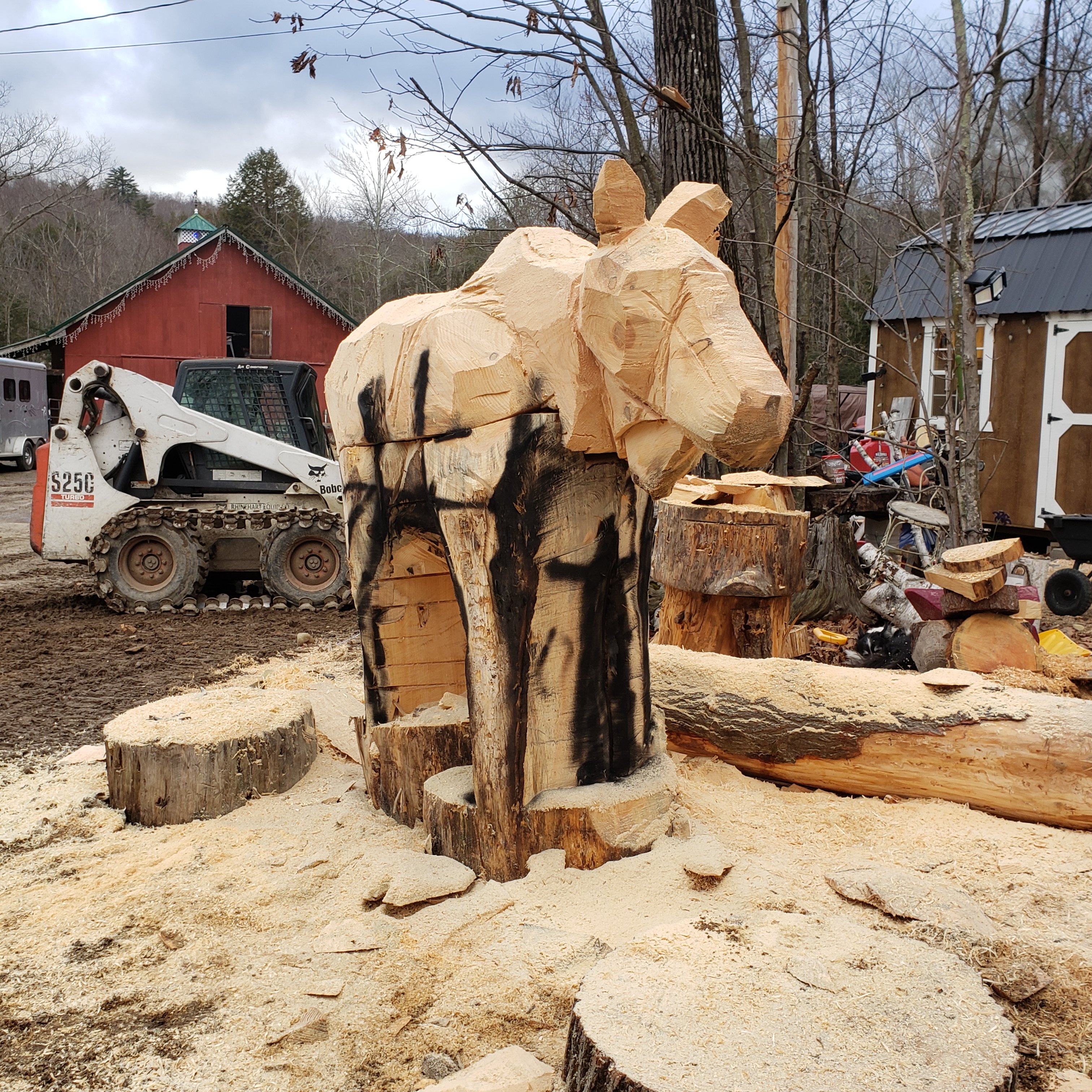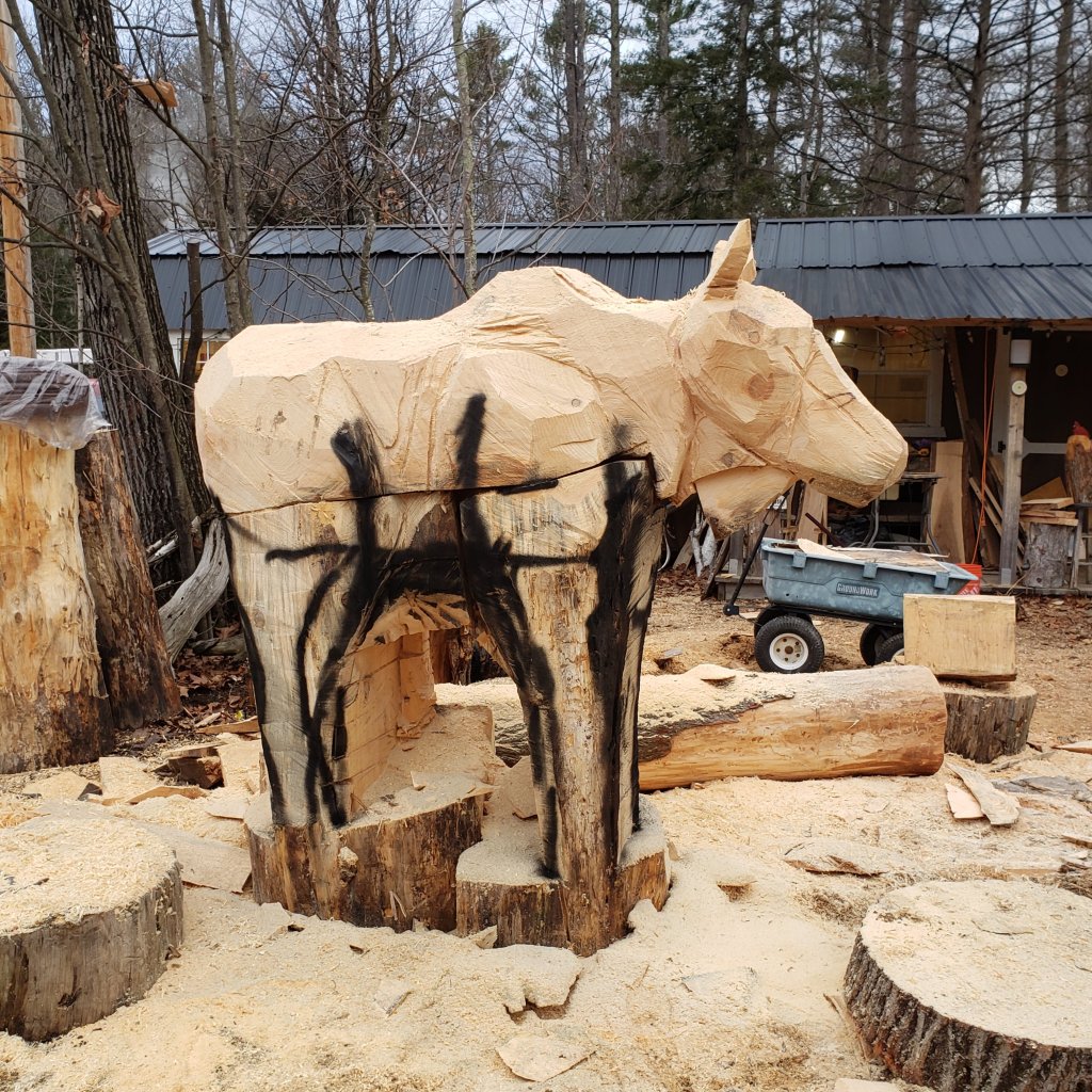 Hello BARBARA!! I had him sold before he was done. Cost depends on size, time, etc. Anywere from $5000-$10,000. If you are interested, feel free to text me and I can put you down on a moose watch list…. thats pretty funny. Anyways, I don’t obligate anyone to any specific carving as they all come out different. A deposit shows me your a serious customer and will give you first dibs on a moose. 603-759-4606. Thank you, Elise