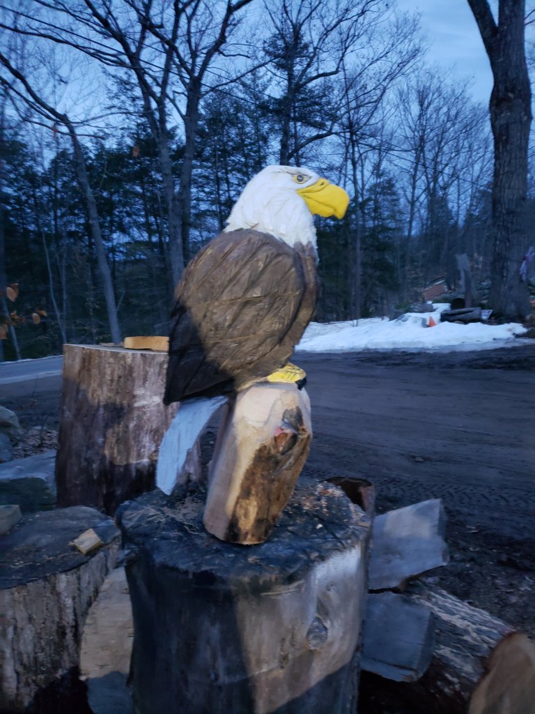 Chainsaw Carved Sitting Bald Eagle. Full size. For sale. MessGe me if interested. $425