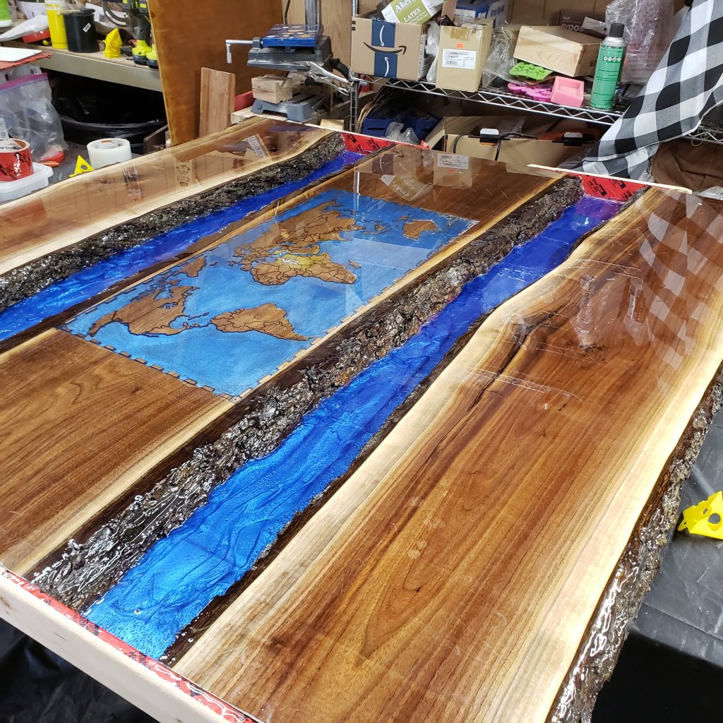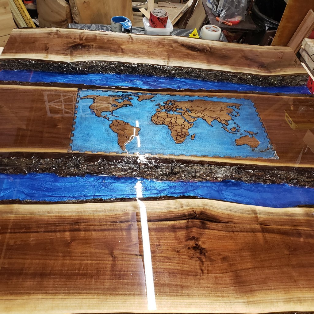 Doing a large double river Black Walnit Table. Not done yet, but looks cool so far.