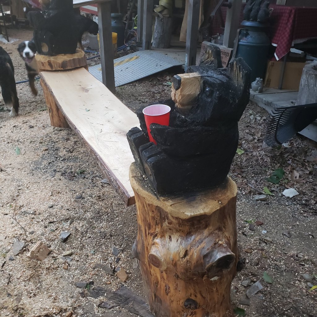 Chainsaw carved bear bench and a new bear creationChainsaw carved bear bench and a new bear creation We’ll be at the show this weekend along with other items