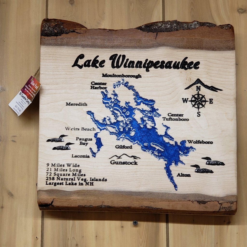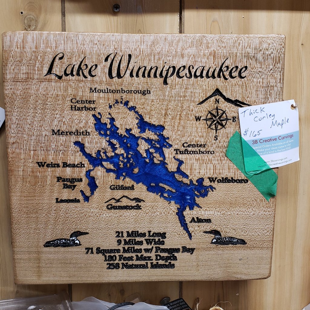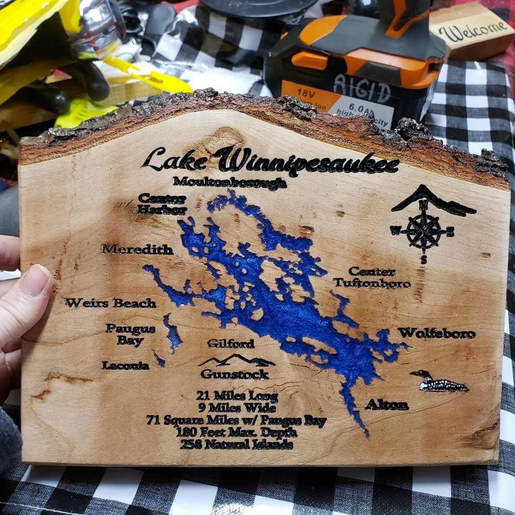 Lake Winnipesaukee and Lake Wi nisquam and many others filled w epoxy and many other carvings available. send me a message if interested