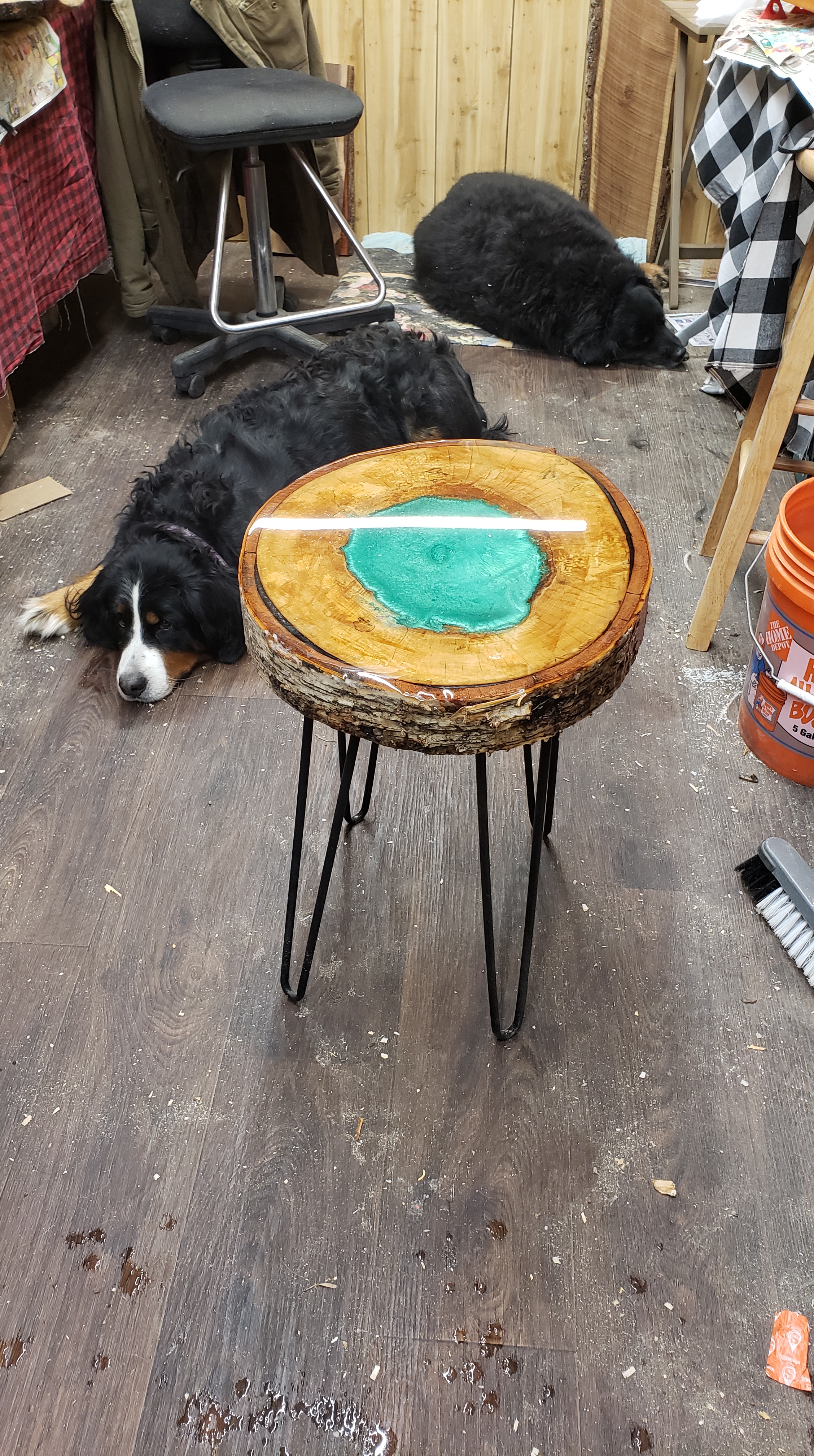 New Cherry Wood, Epoxy End Table or Serving Tray for sale w Aqua/Teal colors that look alive. $250-$285+