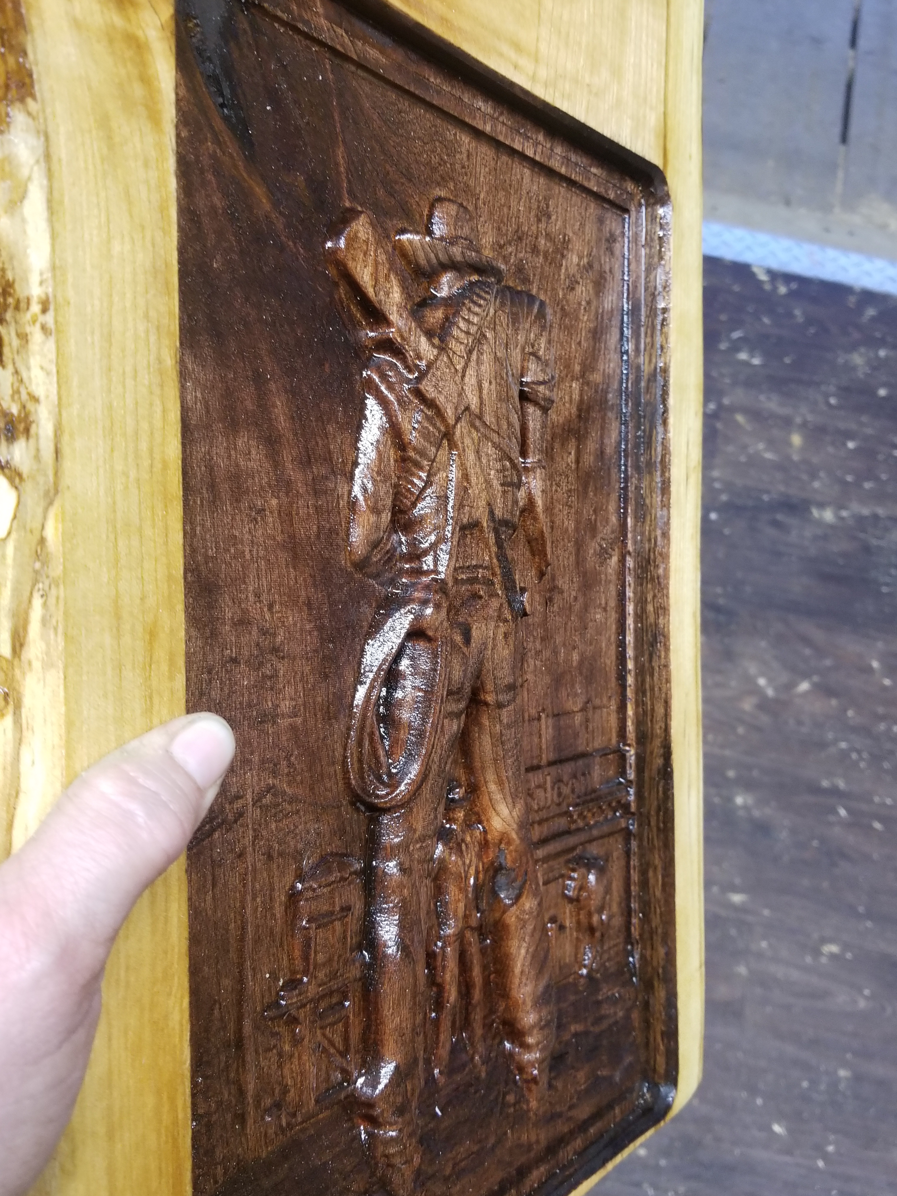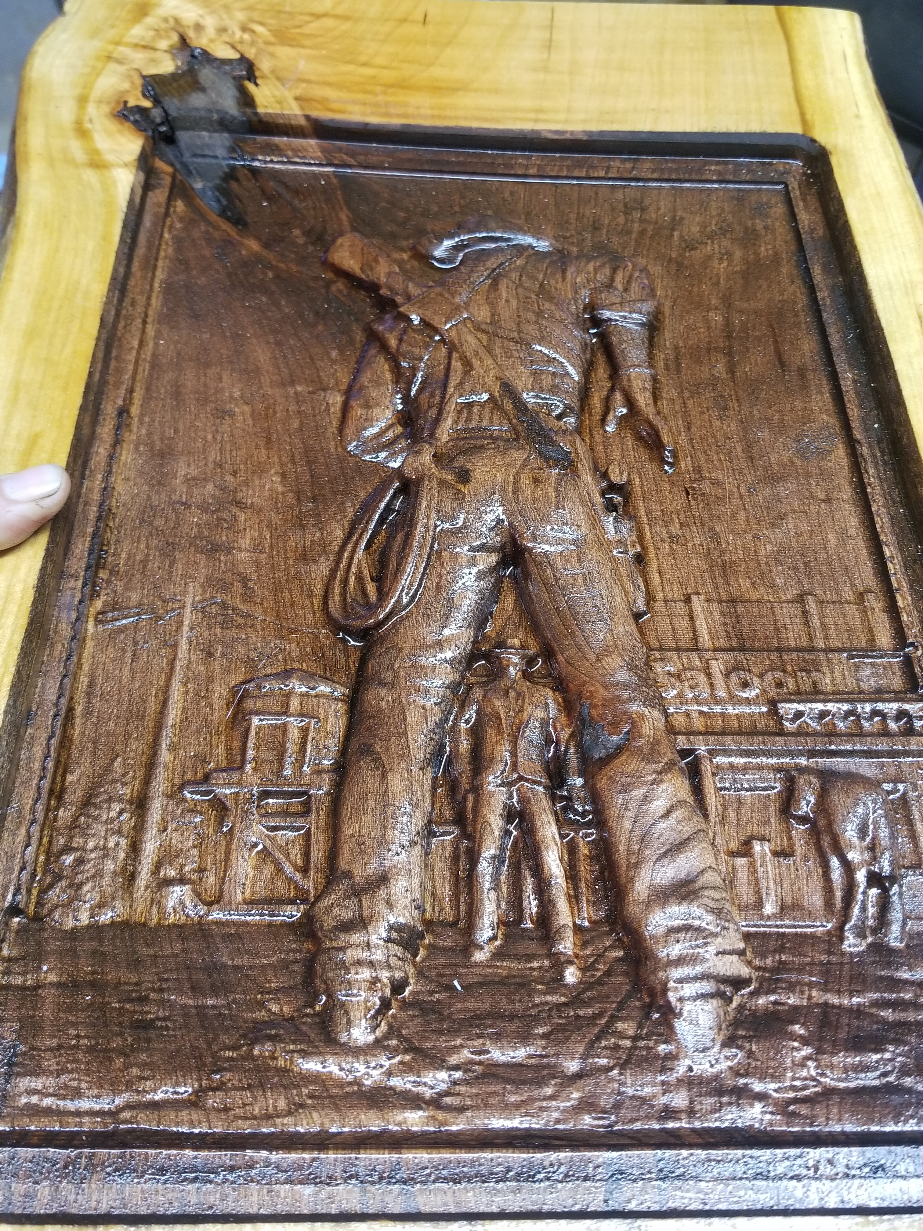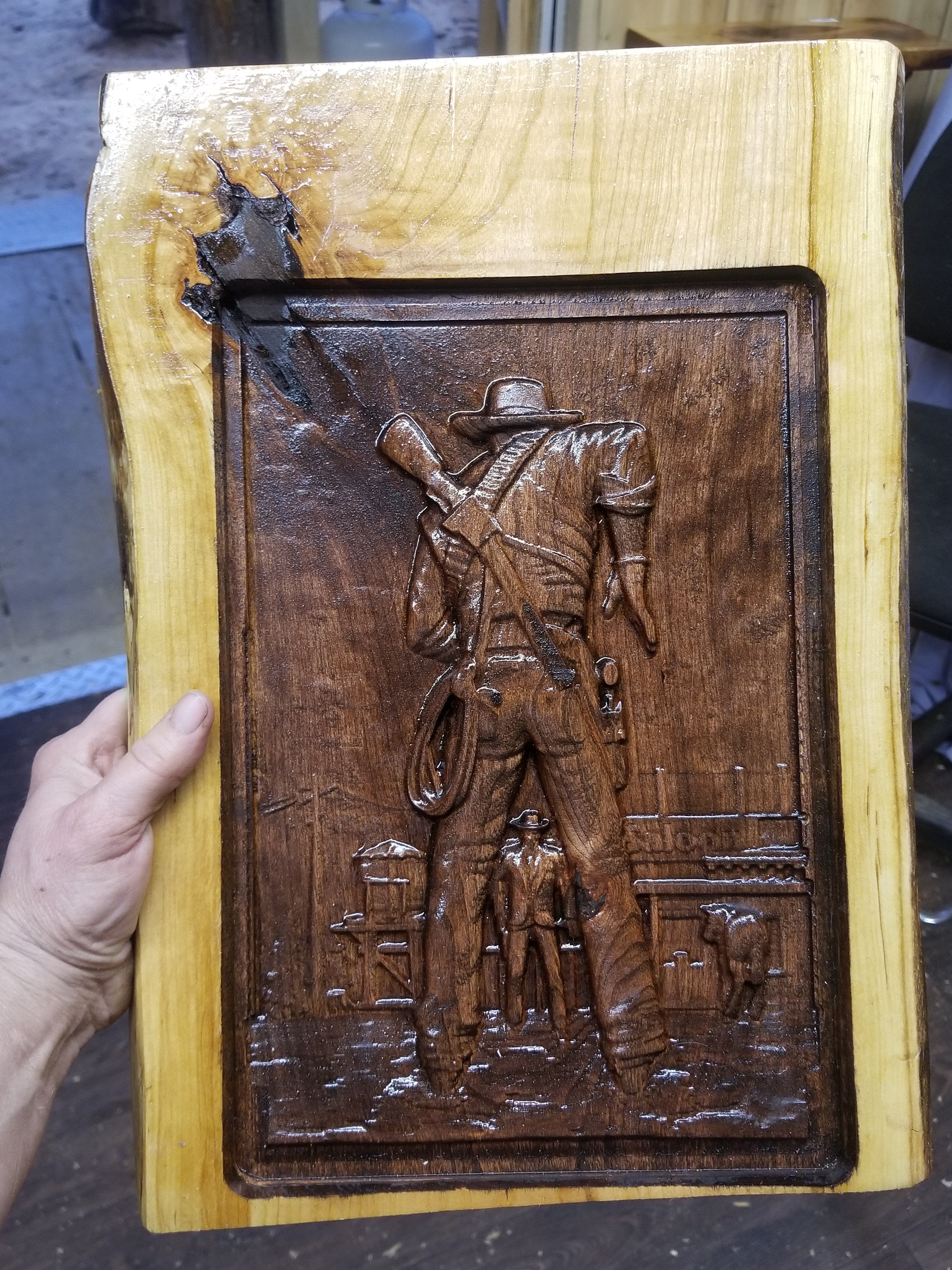 Cowboys on Cherry slab This beautiful slab of Cherry is ready to hang on the wall. Call me if your interested. 603-759-4606 Share this: Click to share on X (Opens in new window) X Click to share on Facebook (Opens in new window) Facebook Like Loading...