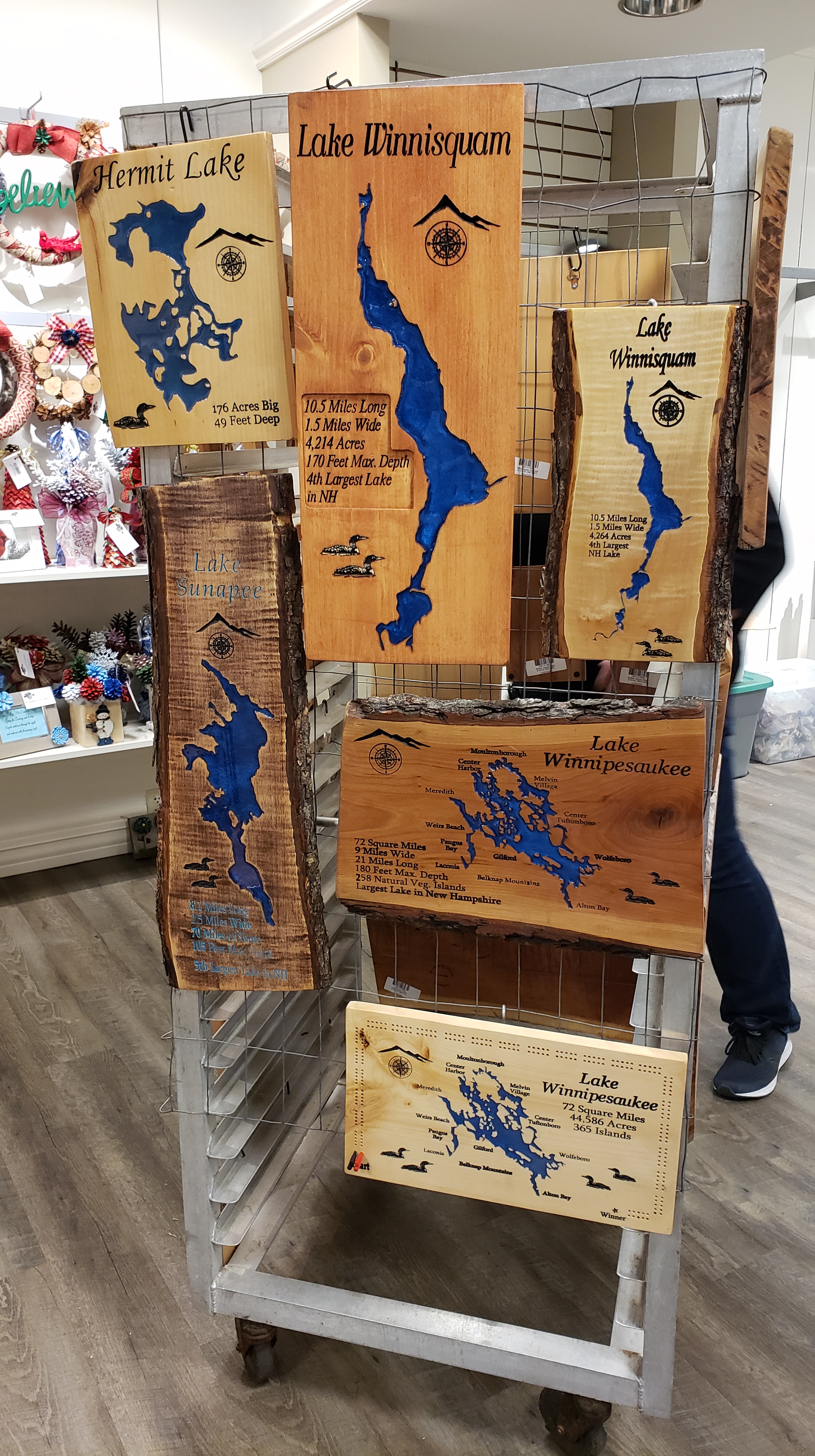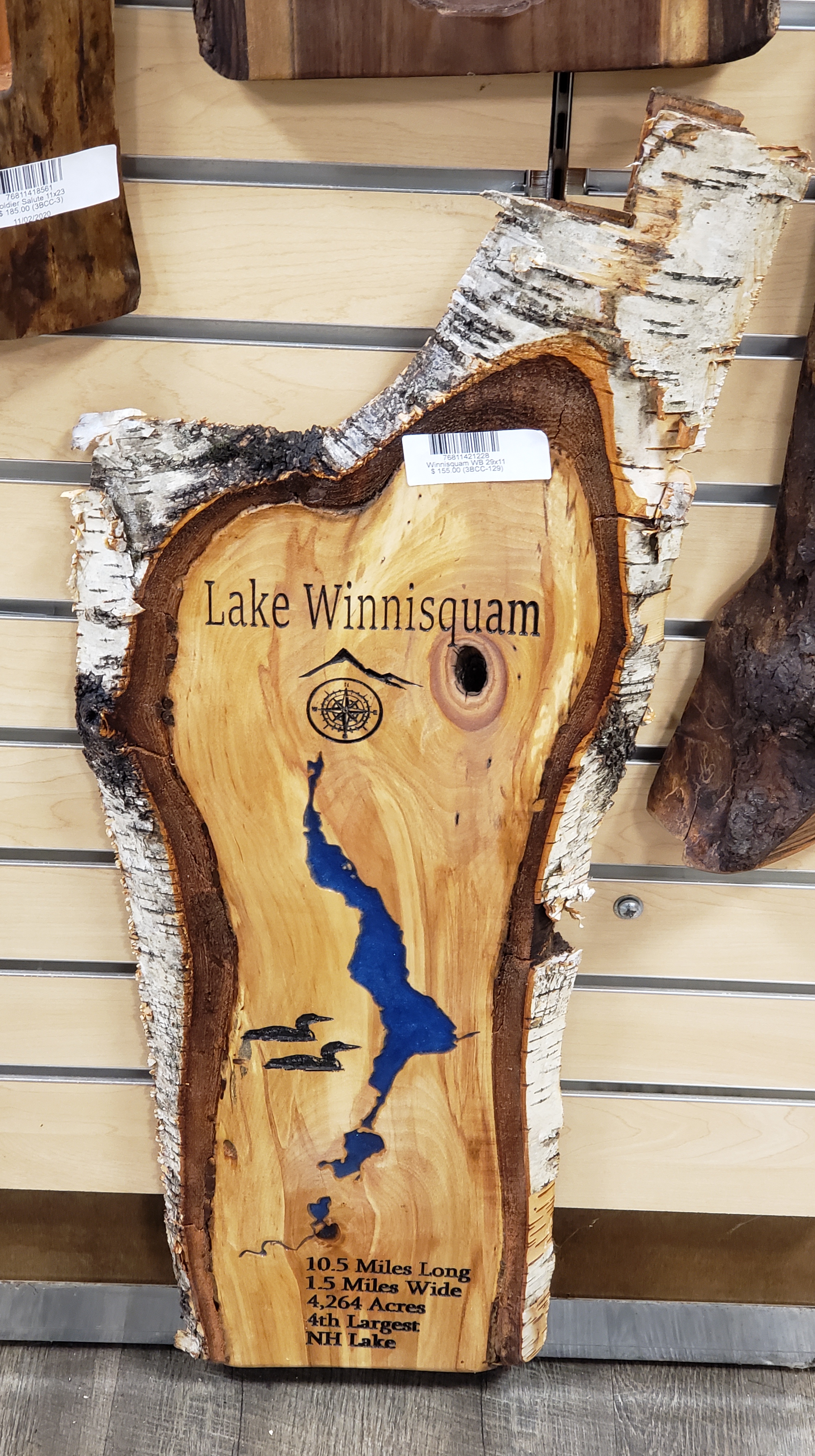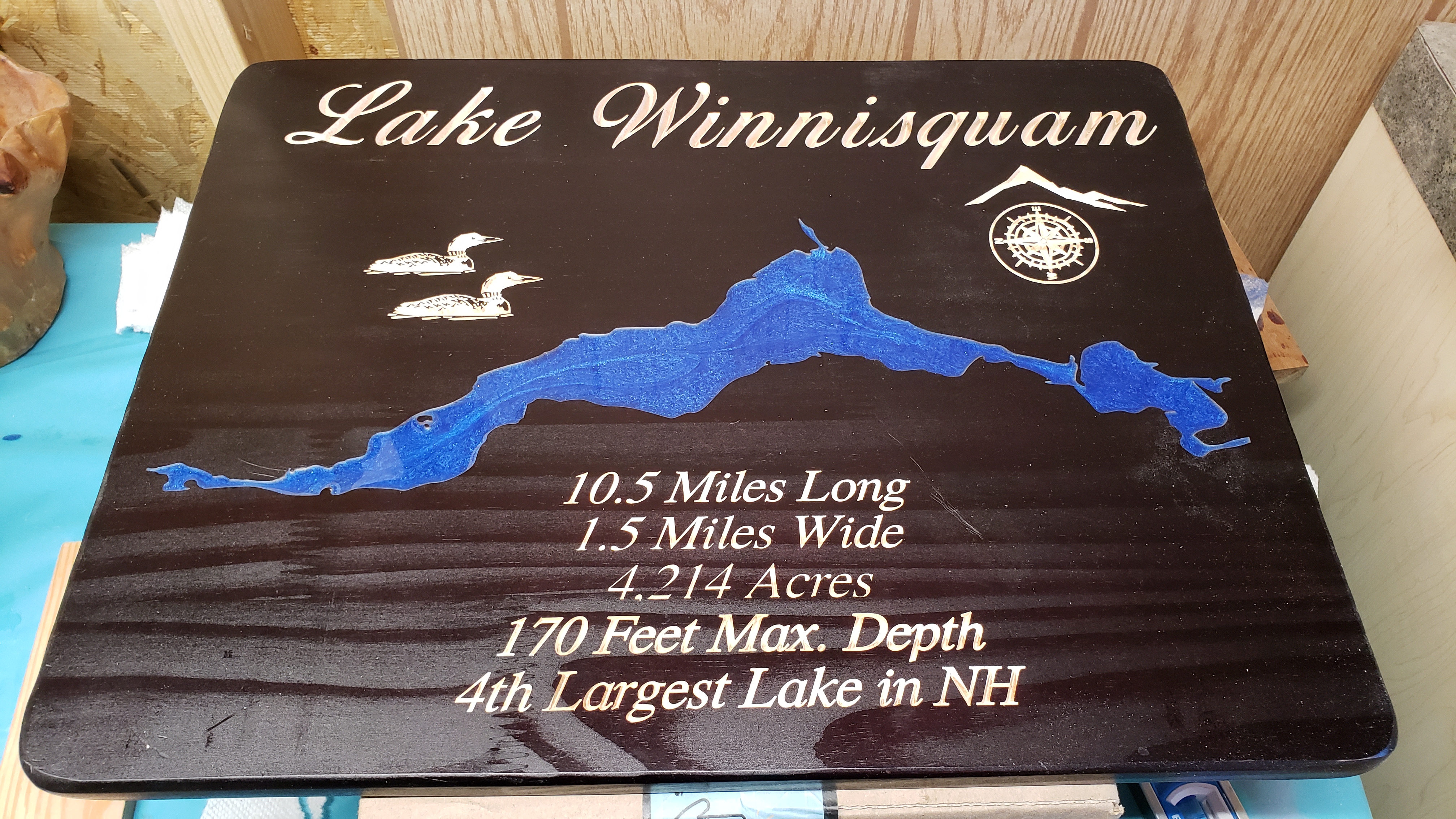 Winnisquam Lake w Blue Epoxy, heres some other examples. Can make special orders. Can personalize w location too. Text me to order. 603-759-4606 Share this: Click to share on X (Opens in new window) X Click to share on Facebook (Opens in new window) Facebook Like Loading...