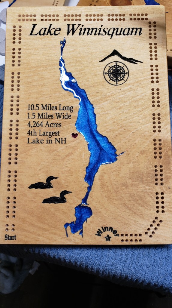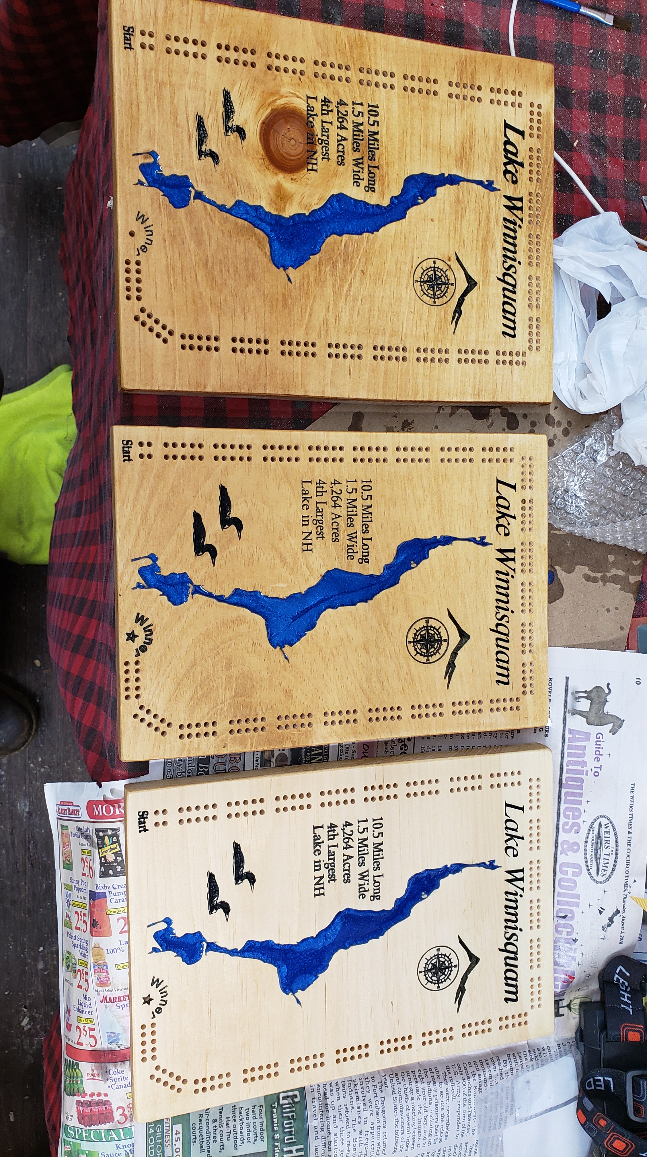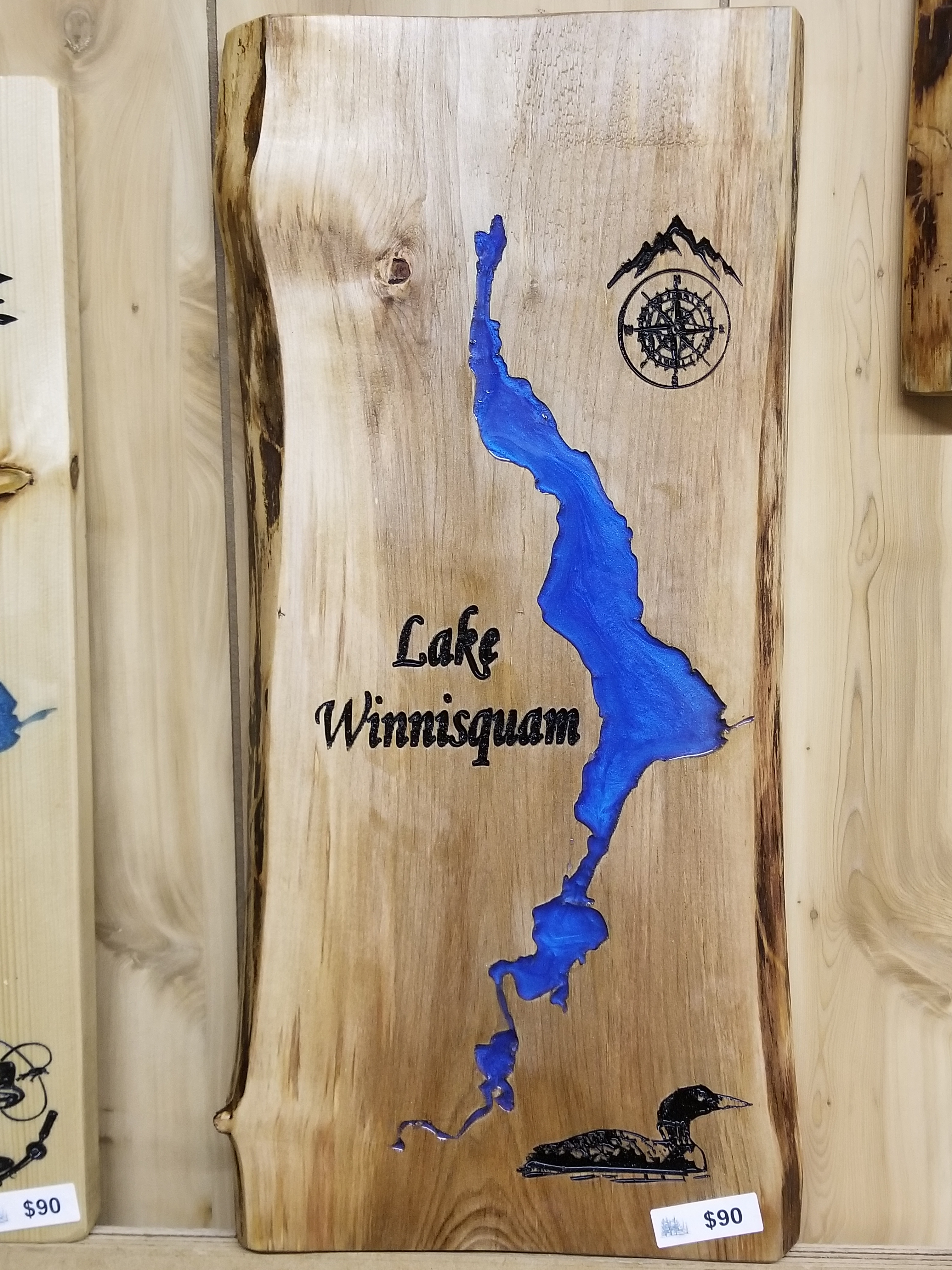 Winnisquam Lake w Blue Epoxy, heres some other examples. Can make special orders. Can personalize w location too. Text me to order. 603-759-4606 Share this: Click to share on X (Opens in new window) X Click to share on Facebook (Opens in new window) Facebook Like Loading...
